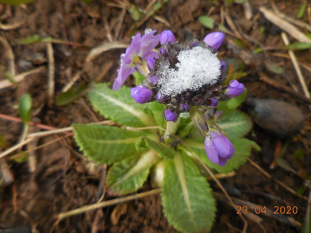 Примулу снегом припорошило