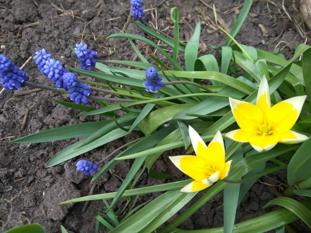 мускари с тюльпанами