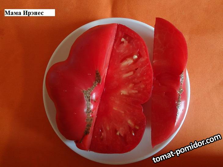 Индет. Среднеспелый. Высокорослый в ОГ 150 см., Растение крепкое. Плоды — крупные бифштексы неправильной формы, густо-малинового цвета, до 400 гр. и более. Мякоть густая, яркого, насыщенного вкуса. Отличная урожайность мясистых, малосемяных, сладких, вкусных плодов. Лист картофельный.
