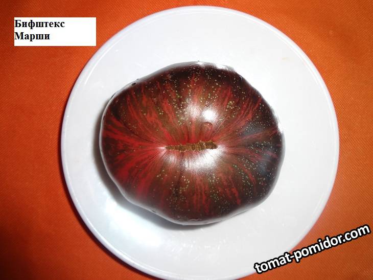 Новый сорт от  Marsha Eisenberg. Очень красивый томат типа бифштекс, мясистая, сочная мякоть, вкус с хорошей сладостью, но и уравновешенной кислинкой. Имеет красивую окраску тёмно красных тонов с зелёными  и серебристыми полосами, по плечам антоциан. Вес 250 гр. в среднем, очень урожайный сорт.