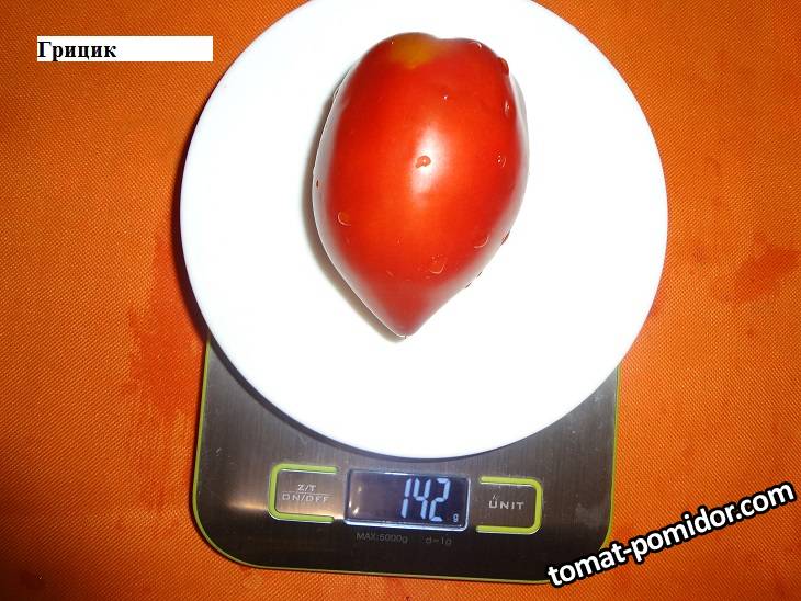 Индет. Высокорослый в ОГ 150 см. Среднеспелый. Плоды 200 - 300 гр., более или менее сердцевидные, чаще в форме бочонков, в кистях от 3 до 5 плодов. Плотная мякоть, содержащая мало семян. Очень вкусные, хорошо сбалансированный  вкус с преобладанием сладости.