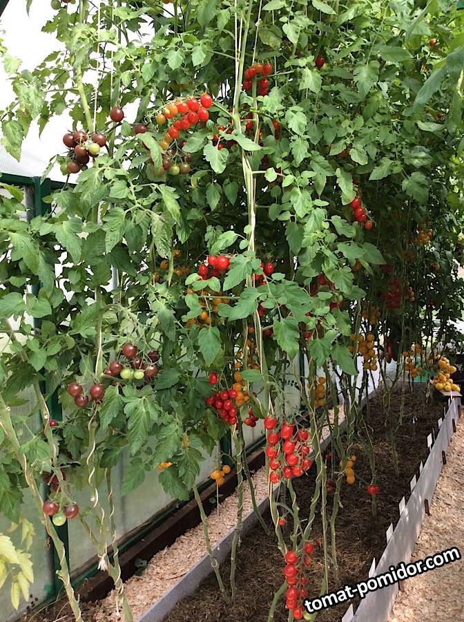 На переднем плане Сладкая Шоколадная Гроздь и красный гибрид V355, далее Саммер Сан. В конце крупные кисти Анна Герман.