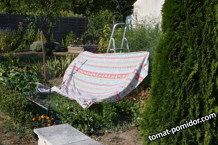Делаю тень. На улице в тени  почти 42 градуса. Не знаю, сколько на солнце.  31 июля. Дакая жара держалась несколько дней, потери конечно были.