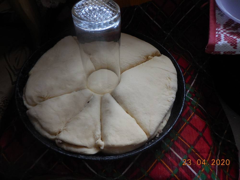В центр ставим стакан и делим лепёшку на 12 секторов