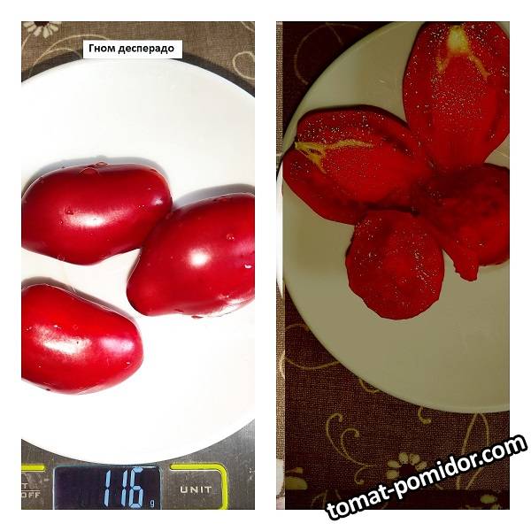 CUCSA 11607 Опубликовано 20 октября, 2021 Гном Десперадо, Отчаянный (Dwarf Desperado) Автор Блейн Хортон. Урожаен, вкусен. Штамб. Низкорослый – 60 см, для ОГ, не пасынкуется. Плоды красивой формы в виде наконечника копья, глянцевые, ровные, розово-малинового цвета, плотненькие и очень вкусные! Вес от мелкого до 100-150гр, в среднем 70гр. Долго не перезревают, могут повисеть спелые на кусте, не трескаются, неплохо лежат. Среднеспелый, длительное плодоношение. 2 Ссылка на комментарий