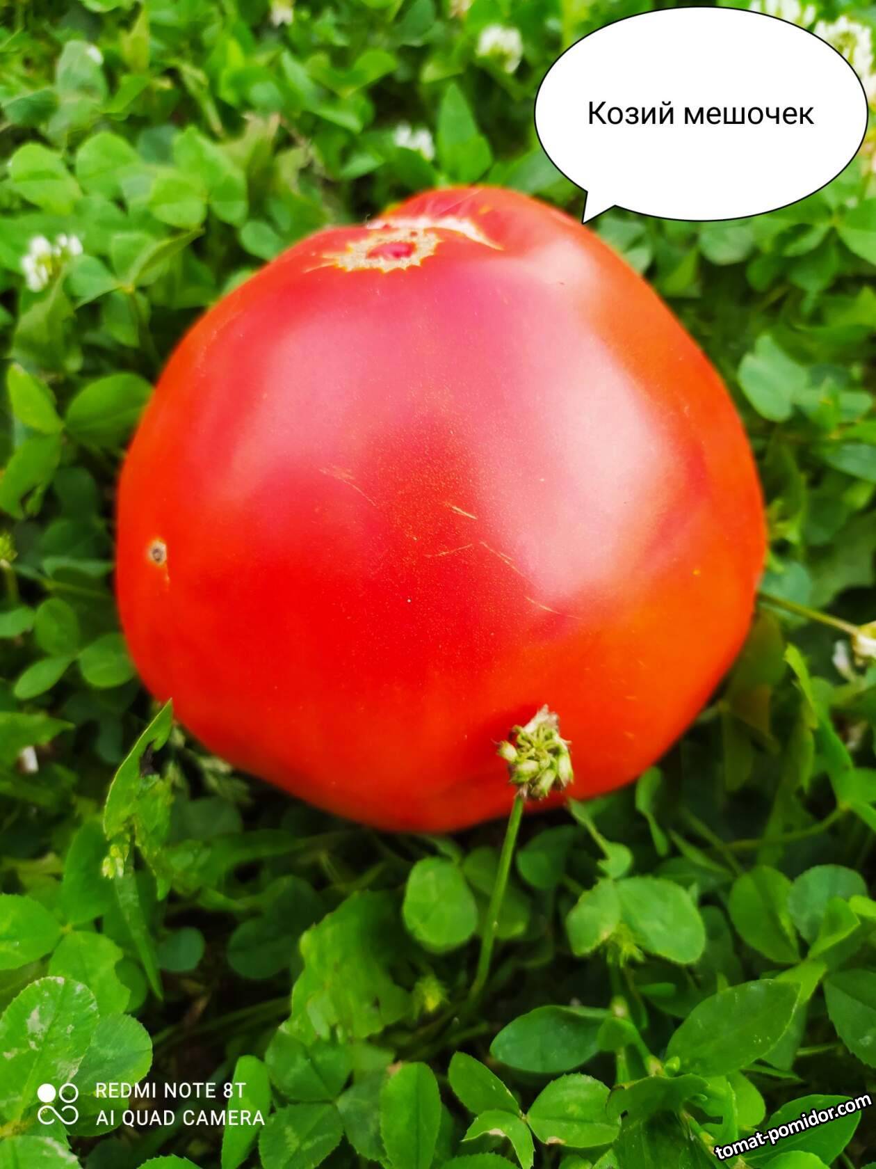 Goat Bag (Козий мешок, Козья сумка)Кусты высокорослые, около 2 метров. Растения крепкие, с прочными стеблями, густой листвой и с прочными не заламывающимися кистями крупных, ярко-красных с небольшими рёбрышками плодов , которые обычно в виде широких сердец, но могут быть и в виде бочонков, массой 500-700 гр. и более. Сорт среднего срока созревания, урожайный.