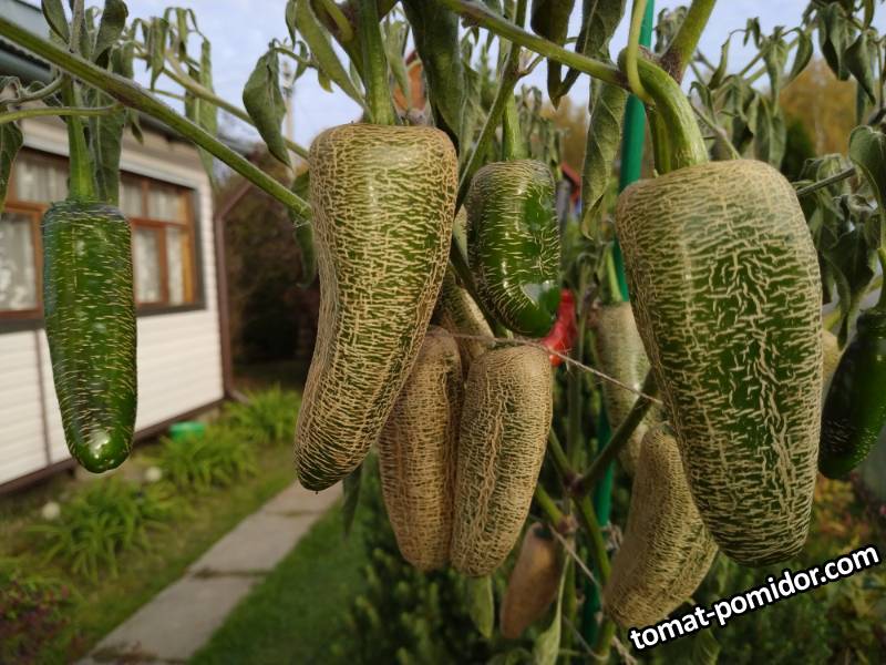 Svetikk 53575 Опубликовано 13 октября, 2021 Jalapeno Farmer's. Очень интересный сорт Халапеньо, лист с опушением, совсем слабоострый, из-за трещинок плоды можно сушить, не разрезая. Описание с Чесночной фермы, откуда и семена: Острый перец Jalapeno Farmer's c.annuum Уникальный сорт халапеньо, который совсем не похож на остальные сорта. Растения высотой до 70 см и имеют очень сильное опушение. Самое сильное опушение, какое я видел. Цветки белые, крупные с небольшой махровостью. Стручки, начиная с технической зрелости покрываются густой сеткой трещин, которые покрывают почти всю поверхность стручка. Из-за этого его еще называют картофельным халапеньо. Острота невысокая до 2500 сковиллов. Аромат и вкус зеленого яблока. Срок вегетации до технической зрелости 110–120 дней при условии выращивания в теплице. Ссылка на комментарий