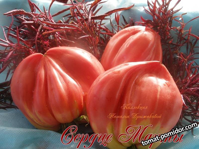 СЕРДЦЕ МАРТЫ ( MARTHA'S HEART ) - яркая новинка сезона ! Эта красавица Марта покорила сердца всех садоводов, влюблённых в томаты ! Не часто встретишь такую форму плодов редкой красоты , вдобавок, с достойными вкусовыми качествами ! Крупные, ребристые плоды нежной розово-малиновой окраски с плотной , вкусной мякотью, практически лишены семян. Плоды на растениях могут быть слегка удлинённой формы или классической сердцевидной. Вес от 250 гр до 350 гр . Мякоть плотная, с мягким, нежным вкусом.
