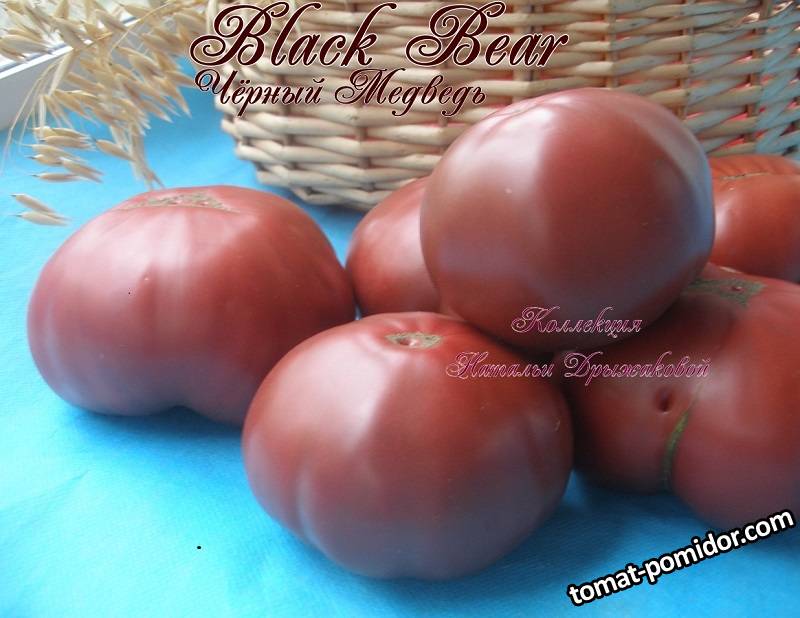 BLACK BEAR ( ЧЁРНЫЙ МЕДВЕДЬ ) - Очень привлекательный, высокоурожайный сорт зарубежной селекции с крупными пурпурно-малиновыми плодами. Масса плодов в среднем 300-400 грамм, сочная, ароматная мякоть плотной текстуры , обладает высокими вкусовыми качествами. Сорт был впервые представлен в Ежегоднике за 2008 год Нилом Локхартом (штат Иллинойс, США ), который получил эти семена от Рейнхарда Крафта из Германии. Высокорослые растения с крепкими стеблями, проявляют хорошую устойчивость к различным заболеваниям томатов, неприхотливые и не капризные. Для получения стабильных урожаев требуется высокая агротехника, сбалансированное питание на протяжении всего периода роста.