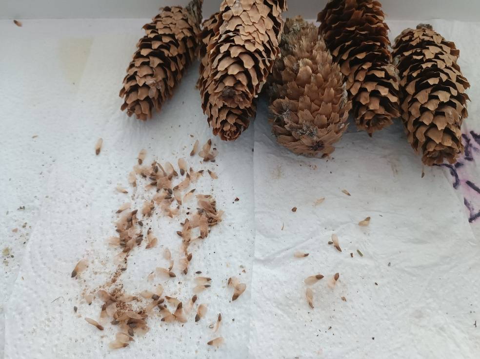 Семена голубой ели собираю