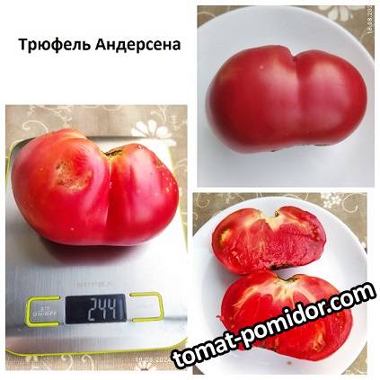 CUCSA 11477 Опубликовано 10 октября, 2024 Томат Трюфель Андерсена Индет. Высокорослый – 1,7 см. Лист картофельный. Плоды малинового цвета в форме торбочки весом до 500 гр. Вкус отличный, яркий, с доминантой сладости во вкусе и довольно яркой кислинкой. Отличный баланс сладости и кислоты, поэтому его вкус воспринимается как очень яркий. И помидорный аромат у него очень насыщенный. Мякоть плотная, маслянистая, без излишней сочности. Структура мякоти - в меру сочный, в меру плотный и даже маслянистость на языке ощущается. Устойчив к растрескиванию. Ссылка на комментарий