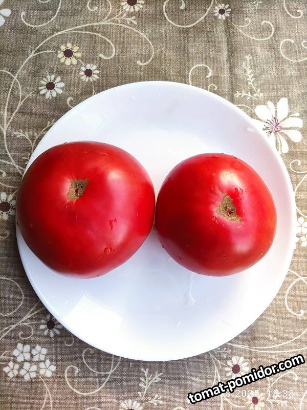Индет. Среднеспелый. Куст крепкий, высокорослый, плоды малиново-розовые бифы с необыкновенно вкусной и ароматной, мясистой, маслянистой мякотью. Вес 400-600 гр.