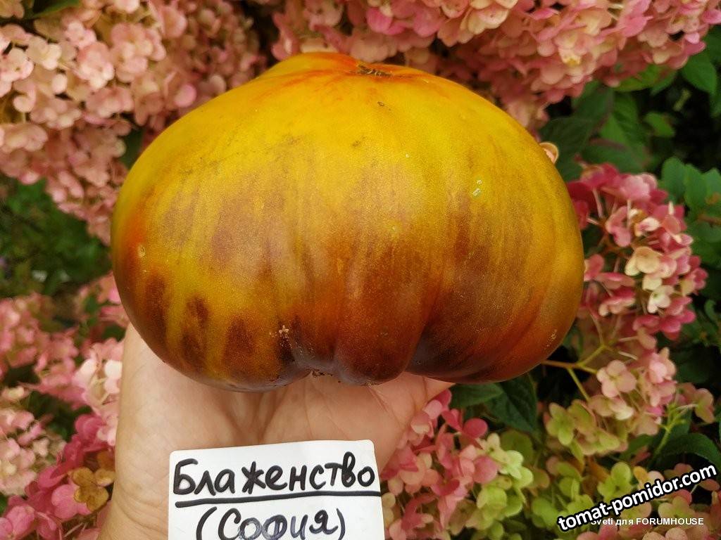 Svetikk 53502 Опубликовано 28 октября, 2025 Блаженство (от Софии) (индет, круглый биф-триколор с анто до 500гр, красота! вкус!) Шедевр от Софии Сааковой Потрясающий фруктовый сладкий вкус, так еще и красавец такой, что жалко было резать. Сорта от Софии, всякие носато-полосатые, биколорные и с анто специально посадила на входе в теплицу- любовалась ими весь сезон Похож на Алмаатинский триколор, только с антоцианом. Ссылка на комментарий