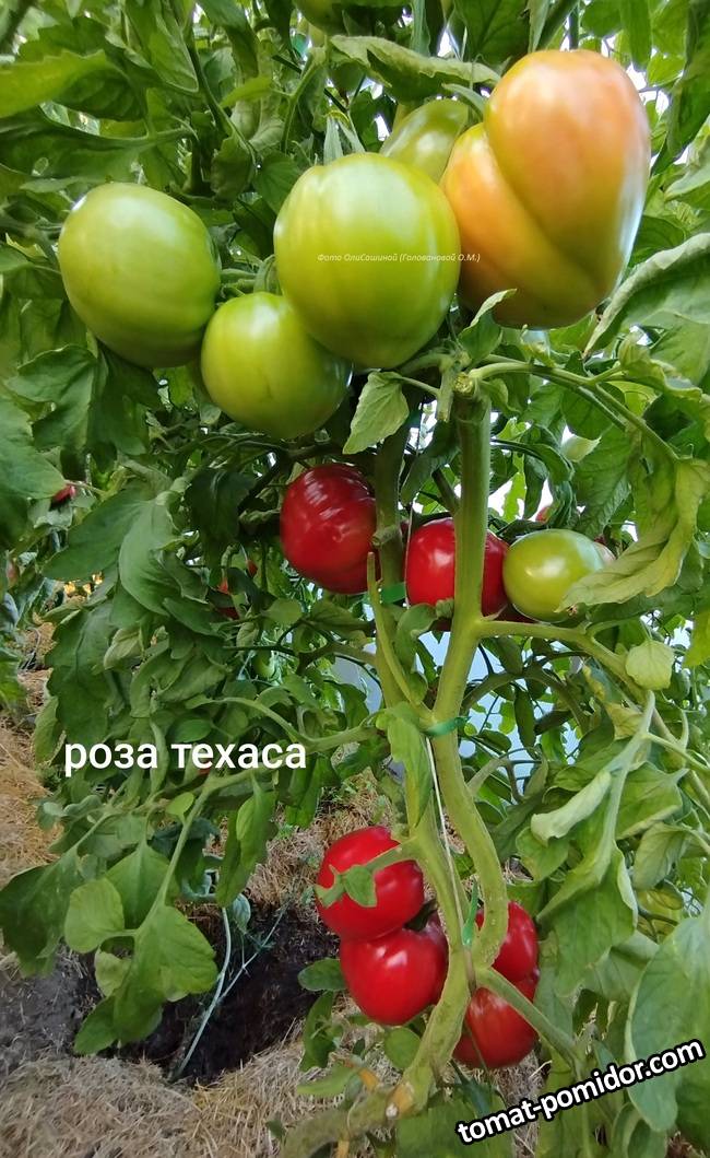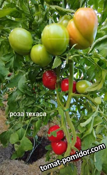 Роза Техаса - индет, среднеспелый. Куст мощный, способен вынести урожай на своих плечах. Повторяю сорт. Очень урожайный, плоды крупные, сочные и вкусные. Масса плодов 300+ гр.