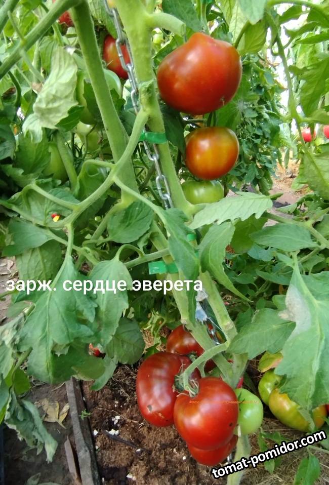 Заржавевшее сердце Эверета - индет. Плоды с бронзовым оттенком, в полной спелости красновато-коричневые, цветом ржавчины. На фото как раз и видно разную окраску плодов при разной спелости. Сладкие, сочные до 200 гр. Темные плоды у меня получились уже переспевшими.