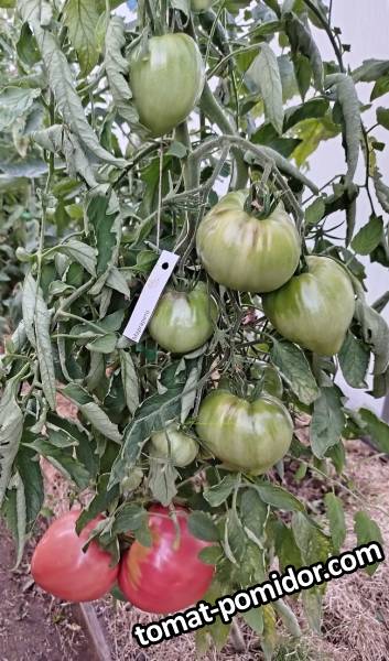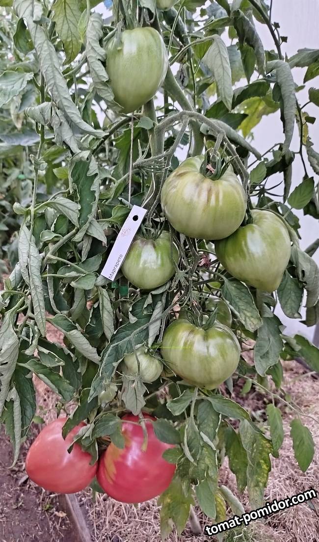 Маргарето - сорт. Индет. Плоды крупные 350+гр розовые сердца. Мякоть сахарная, сладкие, вкусные. Идеально для салатов. Сорт один из первых стал спеть и радовать ароматными салатами. Фото от 19 июля 2025 г. Куст средней высоты - 1,6-1,8, довольно стройный, но с урожаем справляется. Посмотрела, такого сорта у нас в каталоге нету. Но у коллекционеров встречается.