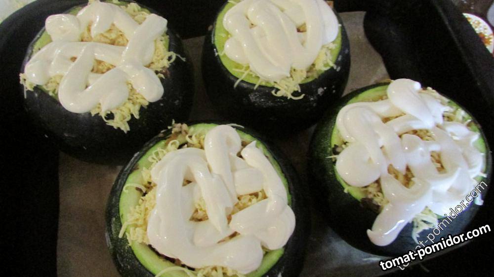 Снимаем крышечки и засыпаем сыр и сеточку из майонеза делаем