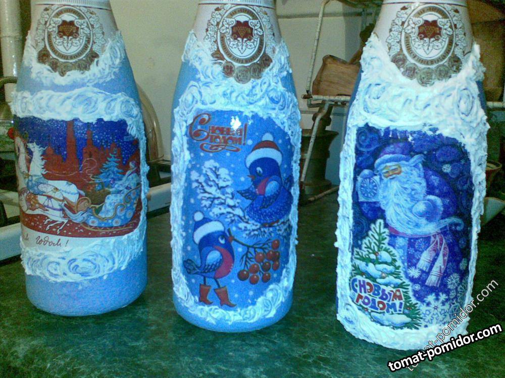 Мои работы к Новому году - ДЕКУПАЖ бутылочек(полных)