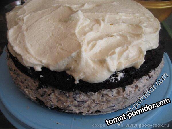 Вкусный торт с кремом из творого, чернослива и белого шоколада.