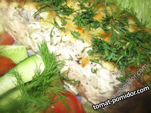 Карп, запеченный под огуречным соусом