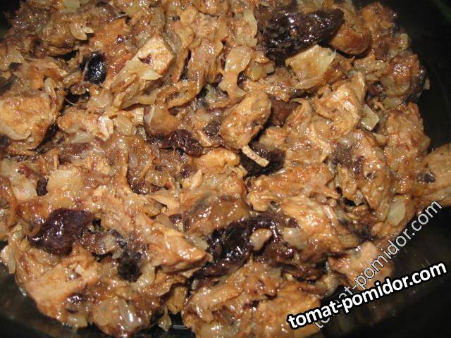 Закуска из телятины(говядины) с черносливом, луком, лимонным соком и оливковым маслом