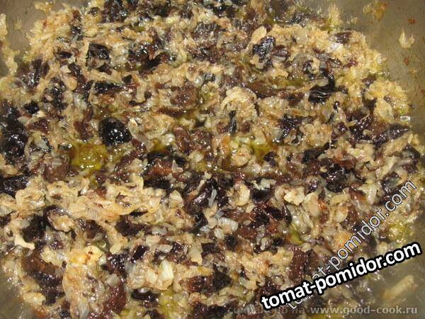 Закуска из телятины(говядины) с черносливом, луком, лимонным соком и оливковым маслом