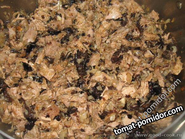 Закуска из телятины(говядины) с черносливом, луком, лимонным соком и оливковым маслом