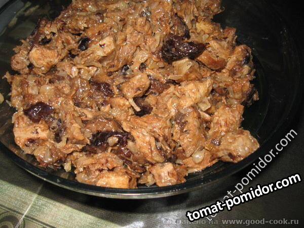 Закуска из телятины(говядины) с черносливом, луком, лимонным соком и оливковым маслом