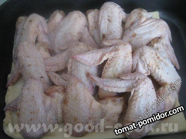 Крылышки с аджикой, запеченные на слоеном тесте