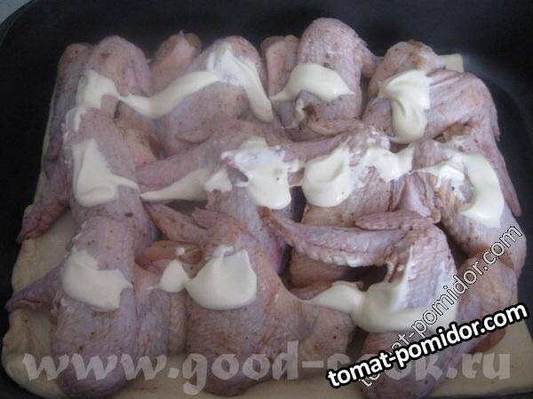 Крылышки с аджикой, запеченные на слоеном тесте