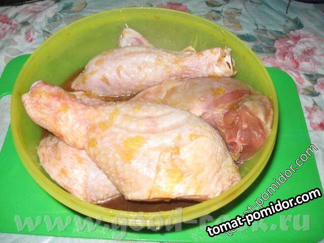 Курица, запеченная с фруктами, с лимонным рисом