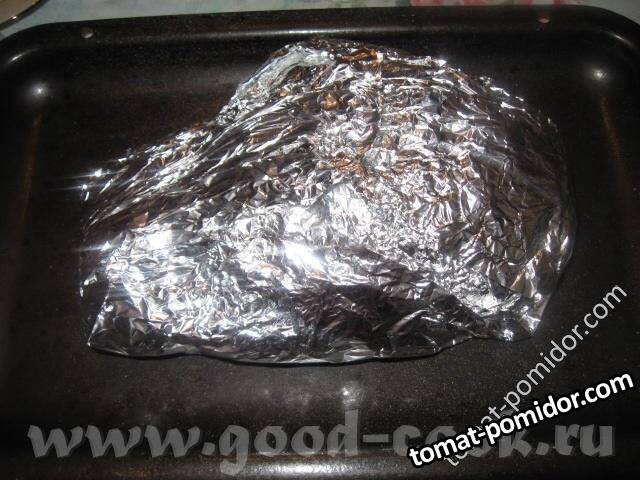 Свиная рулька, запеченная с чесноком и соусом типа " ткемали"
