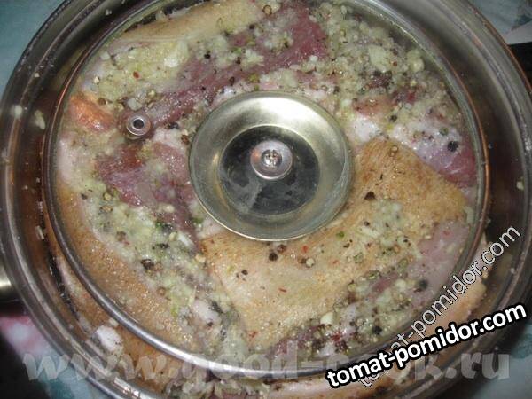 Соленый подчеревок с чесноком и перцем