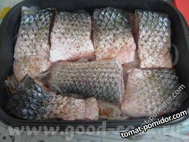 Пеленгас, запеченный на овощной "подушке', под соусом "Тартар"