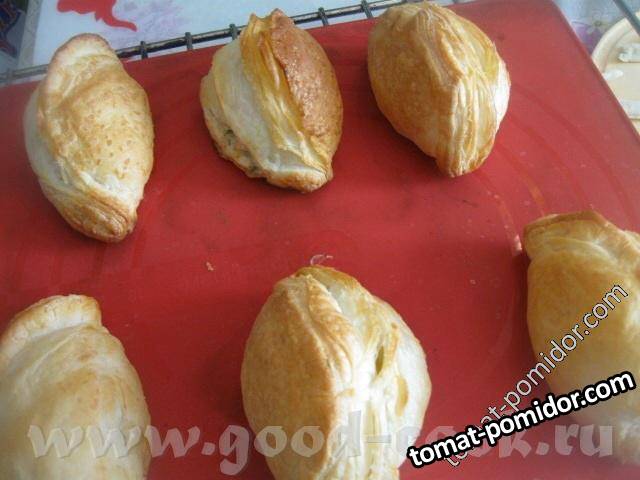 Слоеные пирожки с семгой, луком и укропом