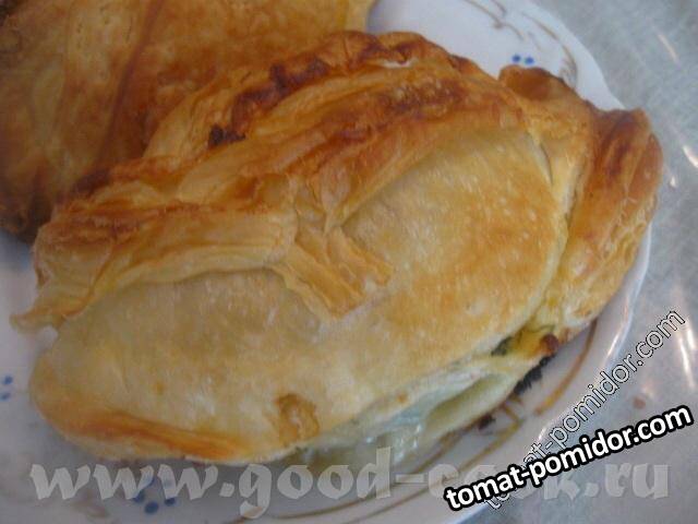 Слоеные пирожки с семгой, луком и укропом
