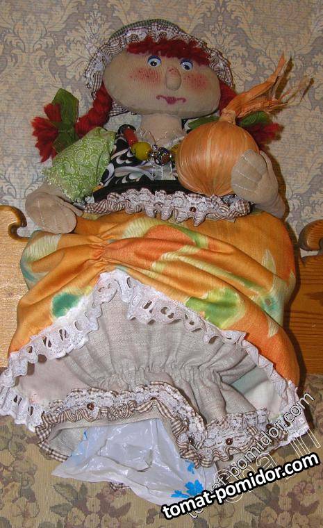 Куколка в сидячем положении. Постаралась ,чтобы было понятно, куда складывать пакеты..