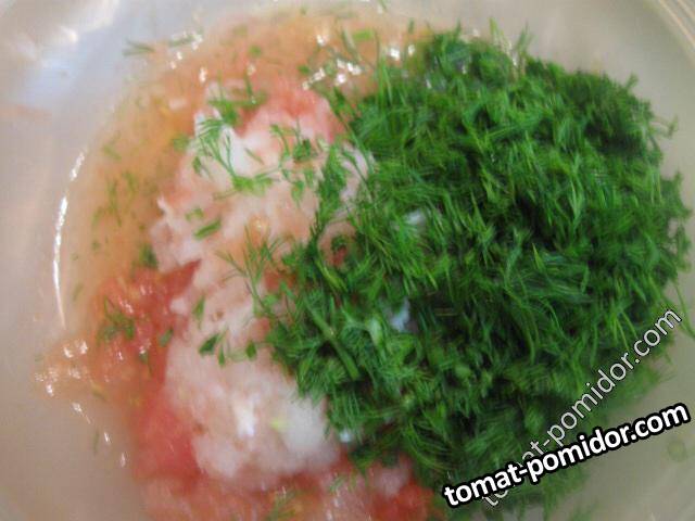 Оладьи с луком, помидорами и укропом
