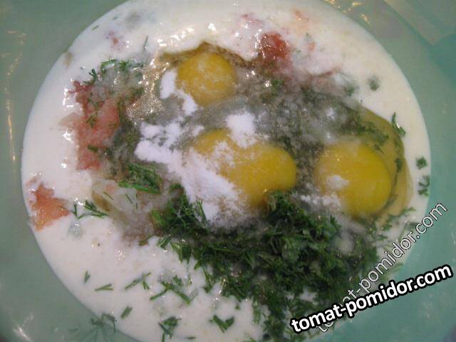Оладьи с луком, помидорами и укропом