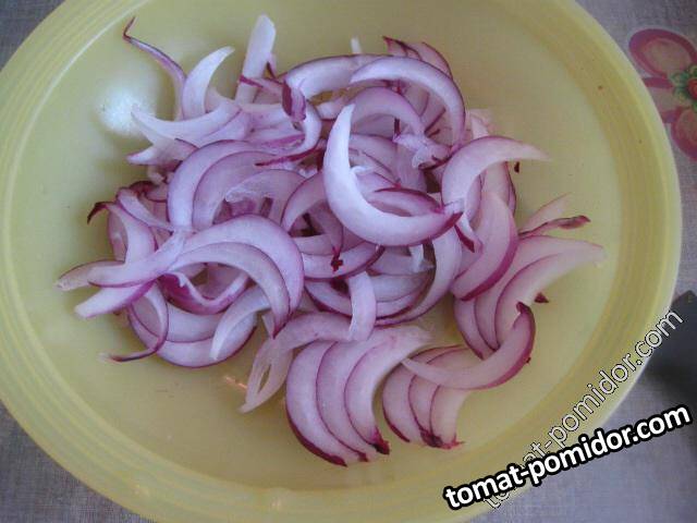 Маринованная закуска из помидоров с луком и оливками