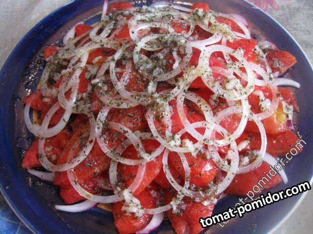 Маринованная закуска из помидоров с луком и оливками