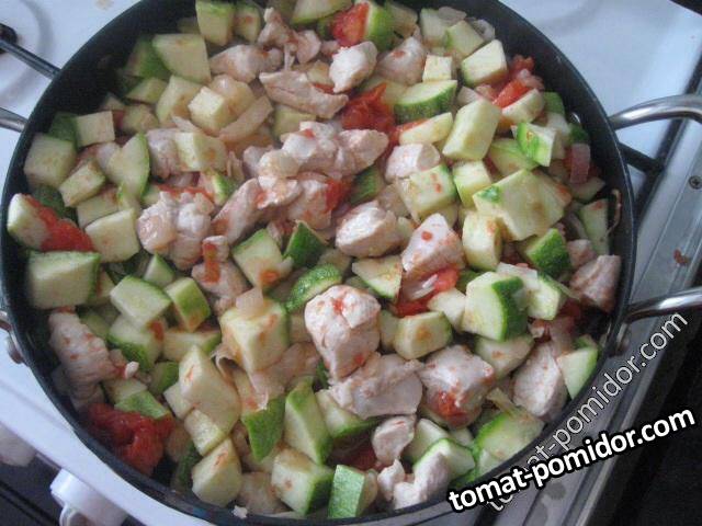 Куриные грудки, тушеные с кабачками и сливками