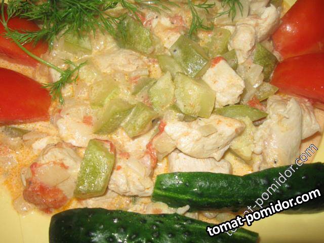 Куриные грудки, тушеные с кабачками и сливками