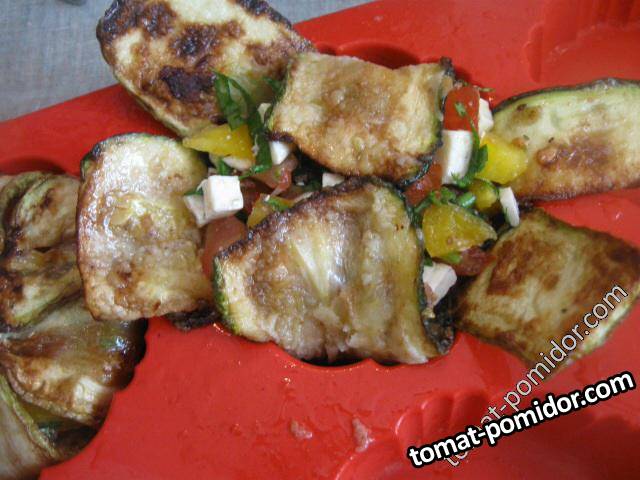 Кабачки,запеченные с овощами и брынзой.