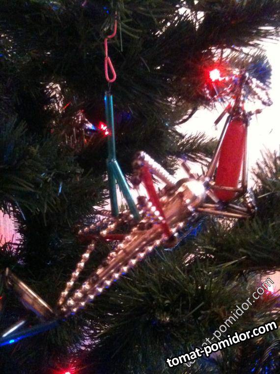 Самолет и мельница из бус, есть еще такие снежинки и парашюты. :)
