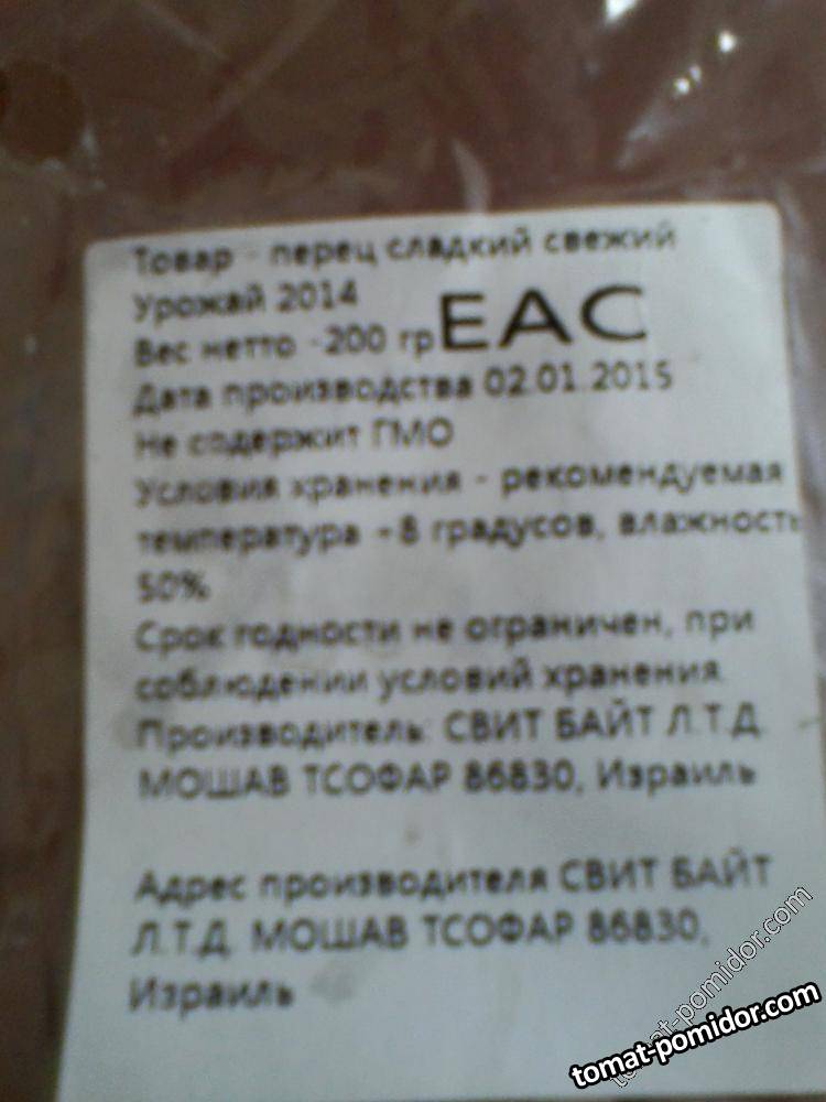 Этикетка к перцу