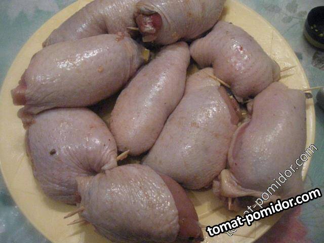 Куриные бедрышки, фаршированные грибами и сыром