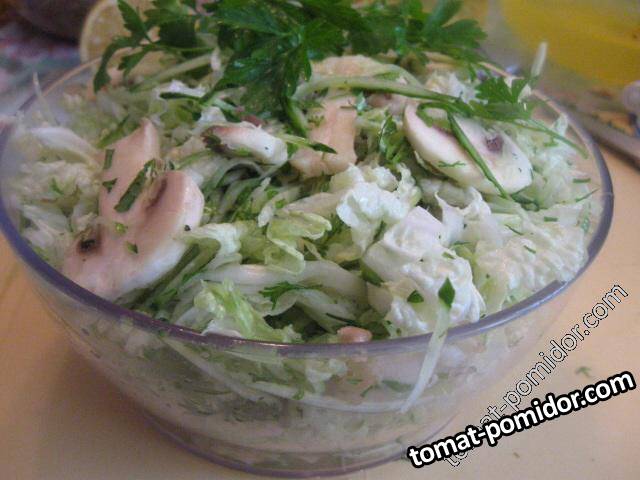 Салат из пекинской капусты,огурца и сырых шампиньонов