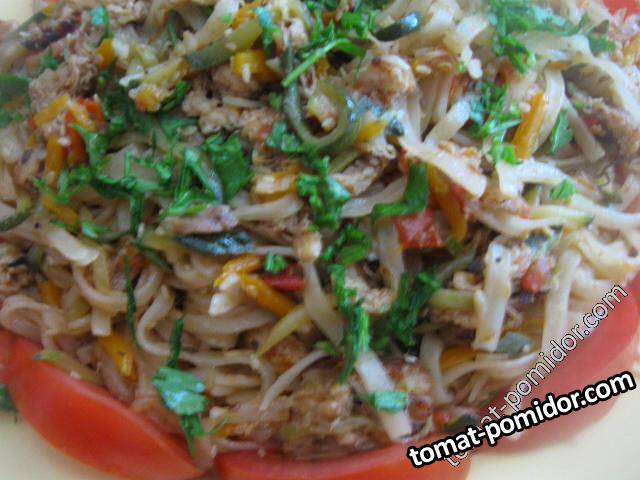 Рисовая лапша с курицей и овощами