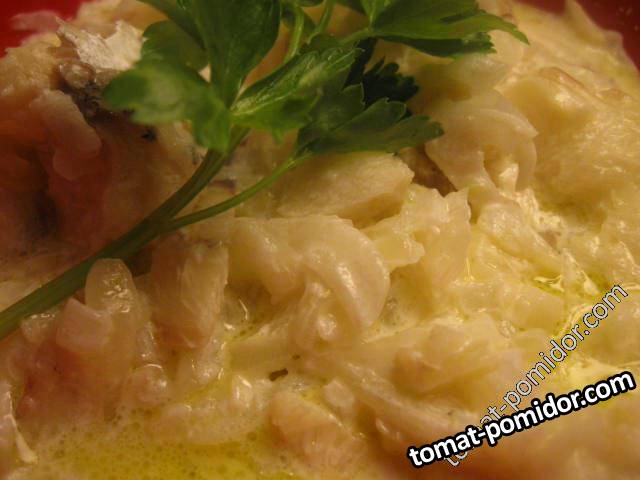 Треска с луком в сливочном соусе